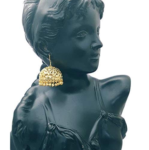 Moonstruck Golden Filigree Jhumka Earring for Women Traditional(Gold)