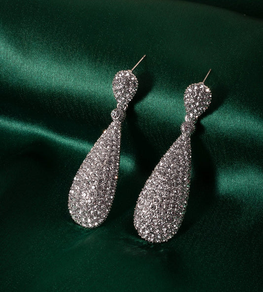 Moonstruck Silver Diamond Metal Dangle Drop Earrings For Women