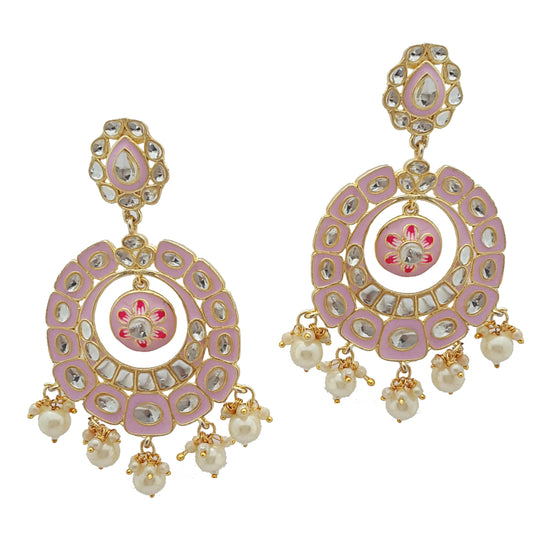 Moonstruck Traditional Indian Golden Chandbali Earrings with Meenakari & Pearls for Women β Light Violet Enamel, Lightweight Alloy, 9cm Length, 31g Weight