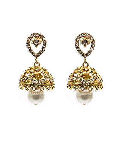 Moonstruck Traditional Inidian Golden Jhumka/Jhumki Earrings With Pearls for WomenΒ (Green,Β Pink)
