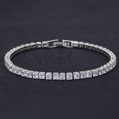 Moonstruck Fashion Jewellery Cubic Zirconia Silver Tennis Bracelet with Princess Cut Stones - Elegant Statement Women Jewelry for Party, Wedding, Evening Wear, Secure Design