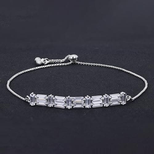 Moonstruck Fashion Jewellery Cubic Zirconia Silver Baguettes Bracelet for Women - Elegant Statement Jewelry for Party, Wedding, Evening Wear, Adjustable Design