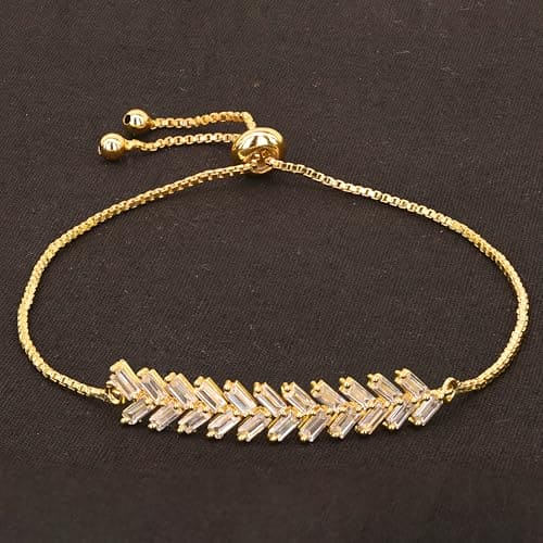 Moonstruck Fashion Jewellery Cubic Zirconia Gold Baguette Bracelet for Women - Elegant Statement Jewelry for Party, Wedding, Evening Wear, Adjustable Design