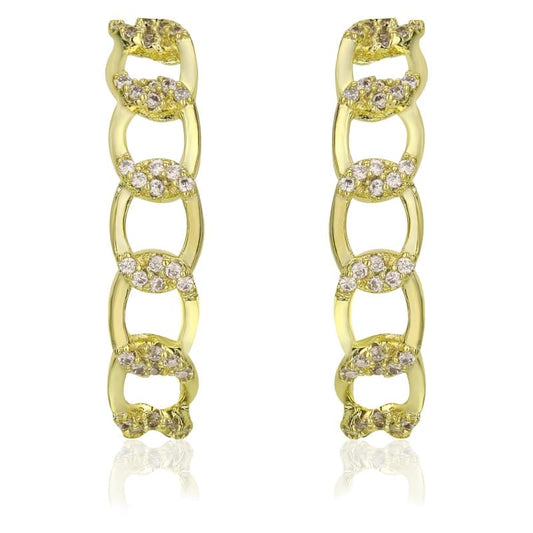 Moonstruck Fashion Jewellery Luxe Gold Chain Link Hoop Earrings for Women - Elegant Cubic Zirconia Statement Jewelry for Party, Wedding, Evening Wear, Hypoallergenic Chic Accessories