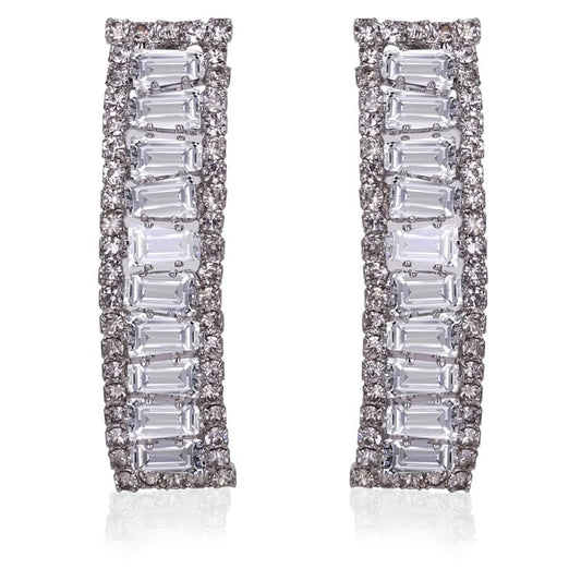 Moonstruck Silver Plated Baguette Hoop Earrings for Women Cubic Zirconia Studded Designer Jewellery Lightweight Traditional and Party Wear Earrings Ideal Gift for Her