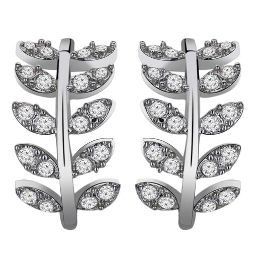 Moonstruck Fashion Jewellery Leaf Huggie Earrings with Cubic Zirconia - Dazzling Small Hoop Earrings for Women, Ideal Gift for Birthdays, Weddings, Anniversaries