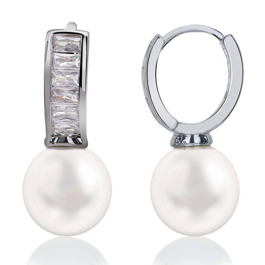 Elegant Pearl Drop Earrings for Women – Classic White Faux Baguettes Pearl Dangle Earrings – Lightweight Silver Tone Statement Jewelry for Weddings, Parties & Gifting