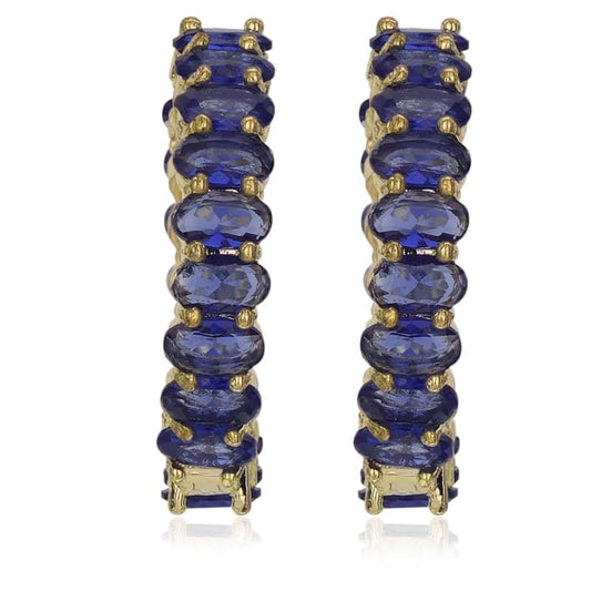Moonstruck Fashion Jewellery Elegant Blue Cubic Zirconia Hoop Earrings for Women - Gold Statement Jewelry for Party, Wedding, Evening Wear, Chic Accessories
