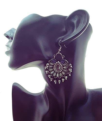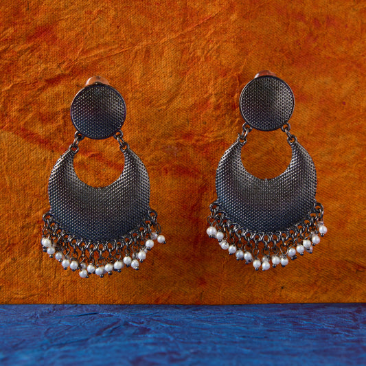 Moonstruck Antique Silver Oxidized Lightweight Traditional Stylish Indian Bollywood Chandbali Dangle Earrings with Pearls for Women