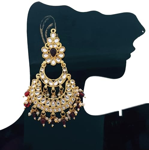 Moonstruck Traditional Indian Chandbali Kundan Earrings With Pearls for Women (Maroon)