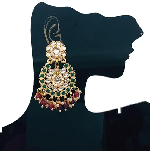 Moonstruck Traditional Indian Chandbali Kundan Earrings With Pearls for Women (Green & Maroon)