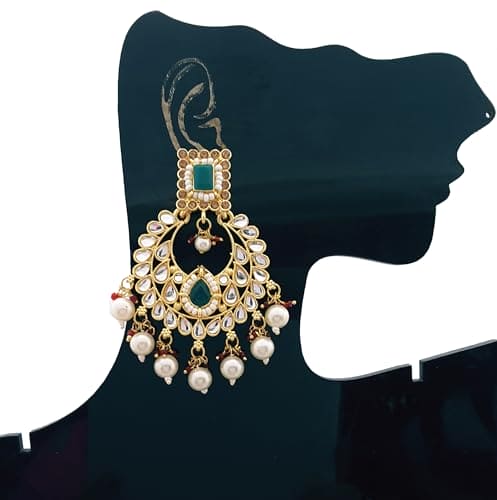 Moonstruck Traditional Indian Chandbali Kundan Earrings With Pearls for Women (Green)