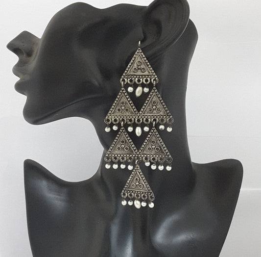 Moonstruck Oxidized Traditional Indian Triangle Dangle Statement Earrings For Women