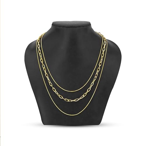 Moonstruck Fashion Jewellery Layered Gold Chain Necklace for Women Silver Plated 3-Layer Snake & Figaro Chains – Dainty Layered Necklace Set for Women, Fashion Jewelry for Gifts, Party, Daily Wear