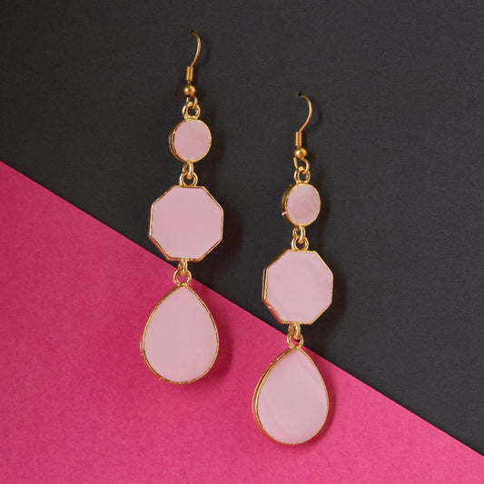 Moonstruck Alloy Metal and Agate Dangle Drop Earrings for Women, Light Pink