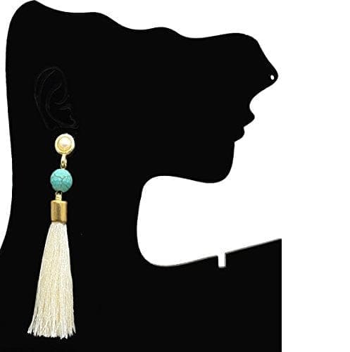 Moonstruck Gold Plated Thread Long Tassel Earring for Women & Girls (Off-White & Turquoise)