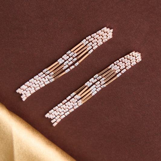 Moonstruck Long Chandeliar Statement Lightweight Tassel Dangle Earrings with Rhinestone Cubic Zirconia (Rose Gold)