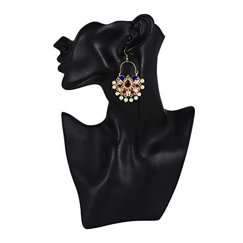 Moonstruck Traditional Indian Chandbali Gold Plated Metal Hoop Earring With Pearl for Women And Girls Wedding Stylish Party Wear (Blue)