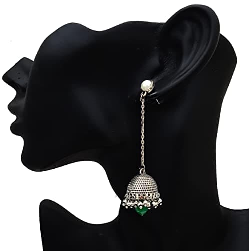 Moonstruck Traditional Golden Long Drop Chain Dangler Pearl Jhumka Earring for Women Girls (Oxidized Emerald)