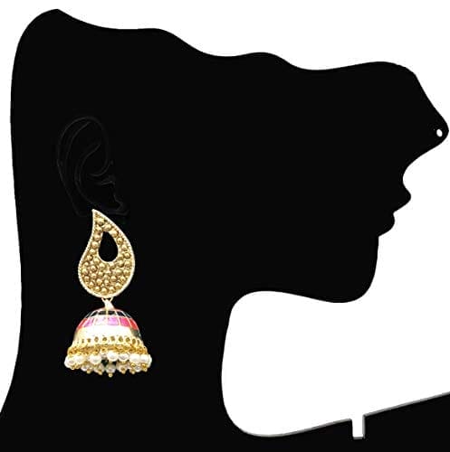Moonstruck Traditional Indian Golden Paisley Jhumka/Jhumki Earrings With Pearls for Womenย (Pink)