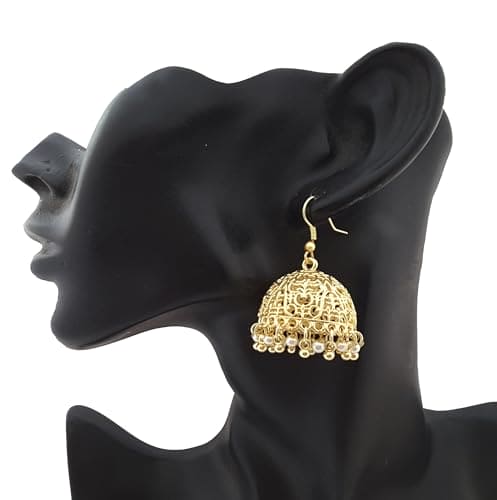 Moonstruck Traditional Indian Golden Jhumka Earrings for Women/Golden Ethnic Jhumki Earrings with Pearl Beads (Gold)