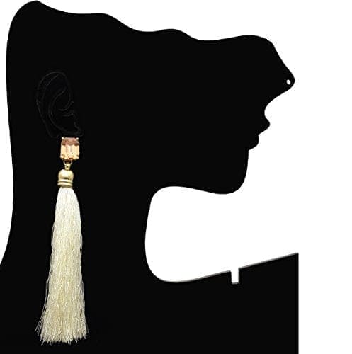Moonstruck Stone Brass Tassel Earrings for Women & Girls, White