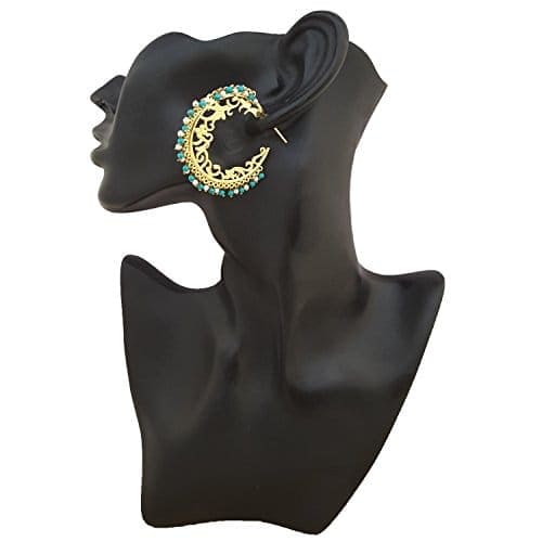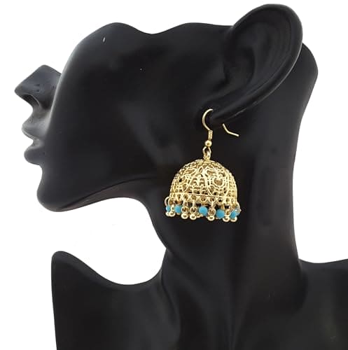 Moonstruck Traditional Indian Golden Jhumka Earrings for Women/Golden Ethnic Jhumki Earrings with Turquoise Beads (Turquoise)
