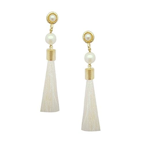 Moonstruck Stone Brass Tassel Earrings for Women & Girls, White