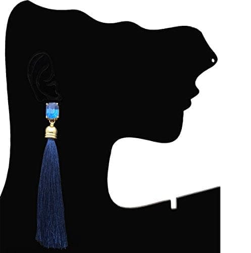 Moonstruck Stone Brass Tassel Earrings for Women & Girls, Blue
