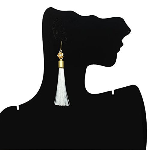 Moonstruck Gold Plated White Thread Long Tassel Earring for Women & Girls