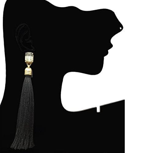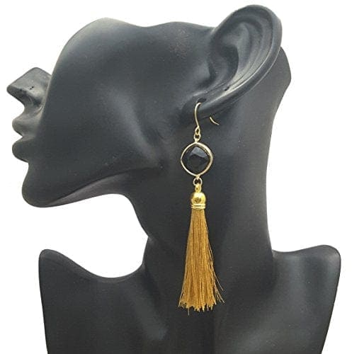 Moonstruck Stone Brass Tassel Earrings for Women & Girls, Black