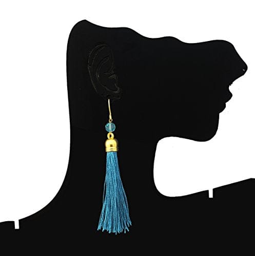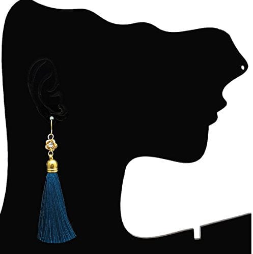 Moonstruck Gold Plated Turquoise Thread Long Tassel Earring for Women & Girls