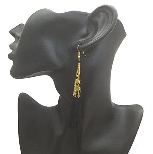 Moonstruck Thread Long Tassel Earring for Women & Girls (Black & Gold)