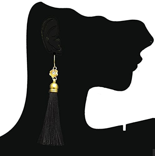 Moonstruck Gold Plated Black Thread Long Tassel Earring for Women & Girls (Black)