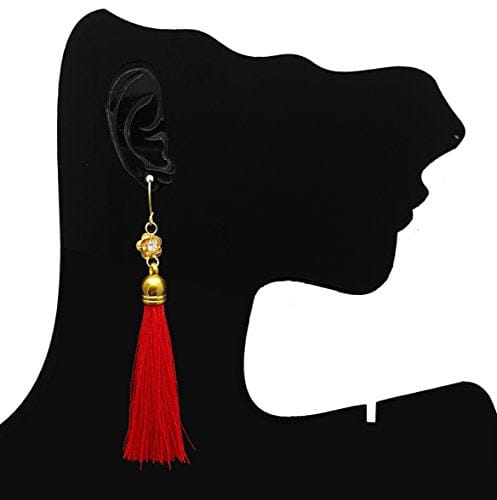 Moonstruck Gold Plated Red Thread Long Tassel Earring for Women & Girls