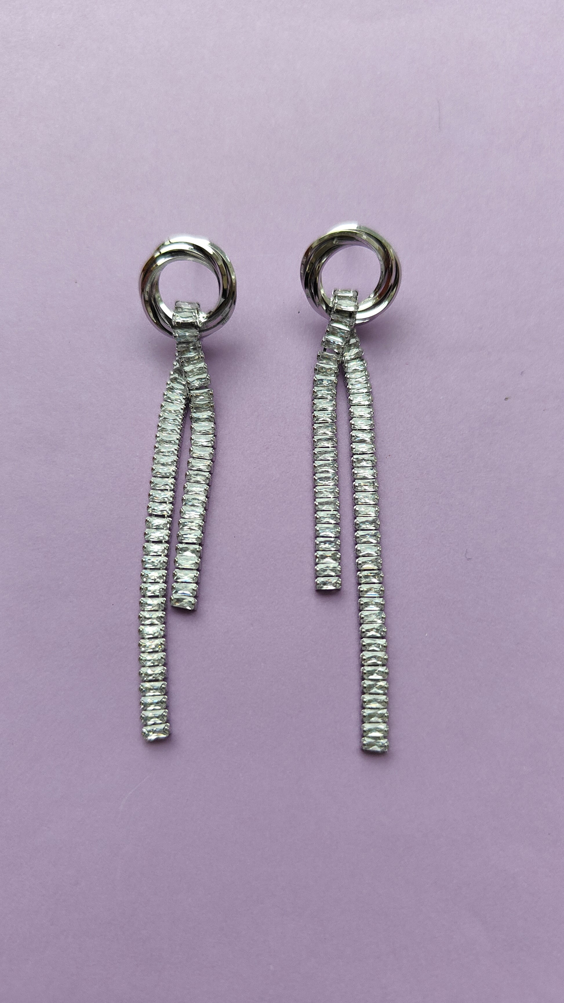 Moonstruck Fashion Jewellery Glamorous Cubic Zirconia Knot Dangle Baguettes Earrings for Women - Elegant Drop Jewelry for Party, Wedding, Evening Wear, Statement Accessories