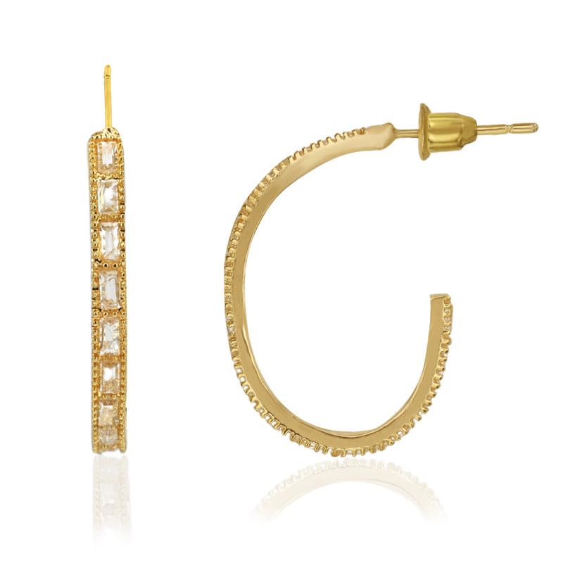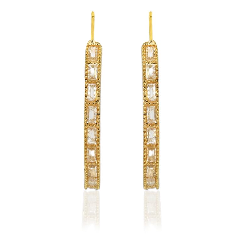 Moonstruck Silver Plated Baguette Hoop Earrings for Women Cubic Zirconia Studded Designer Jewellery Lightweight Traditional and Party Wear Earrings Ideal Gift for Her